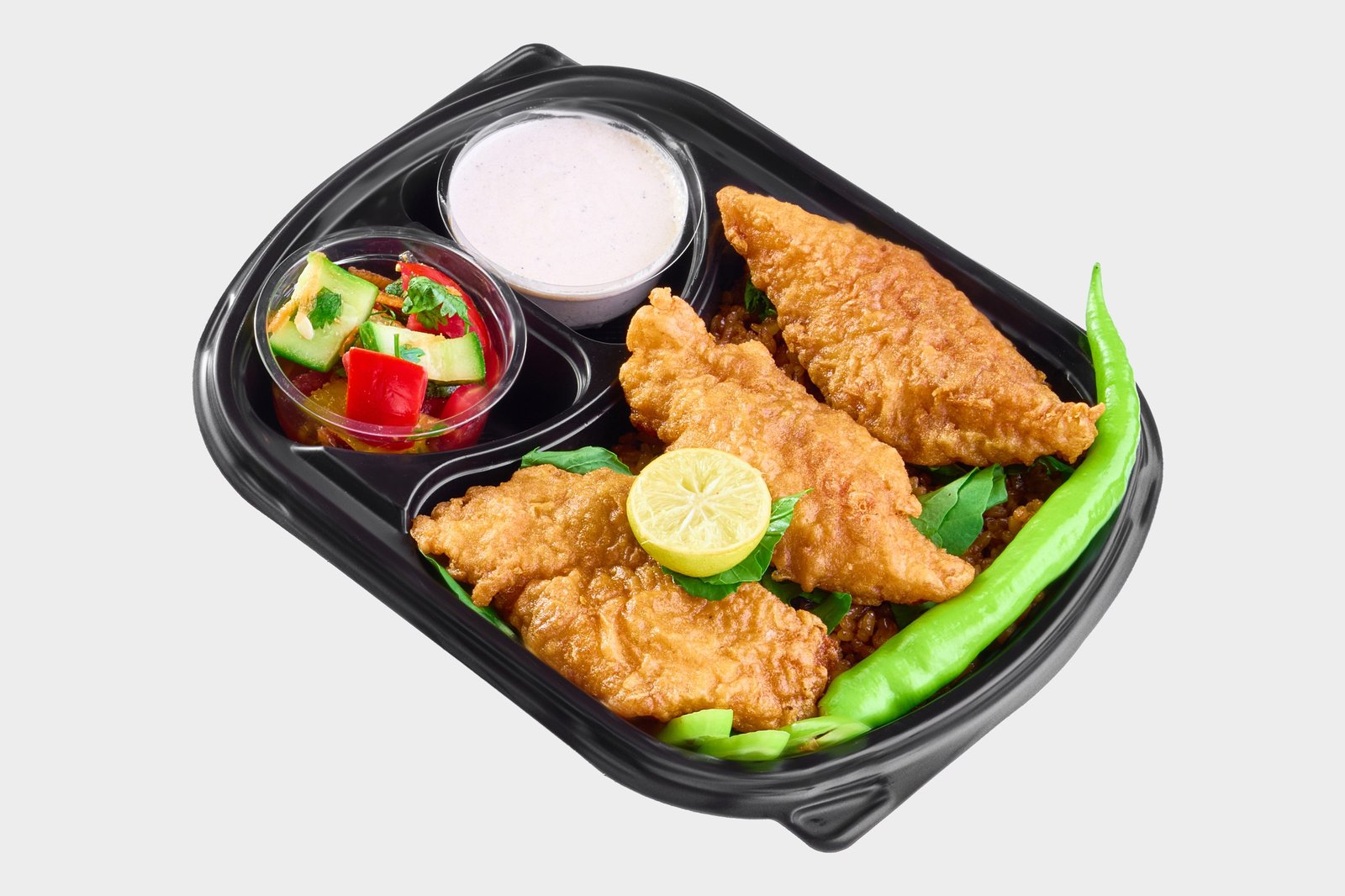مكونه من ( سمك فيليه + ارز صياديه + سلطه خضراء + طحينه )